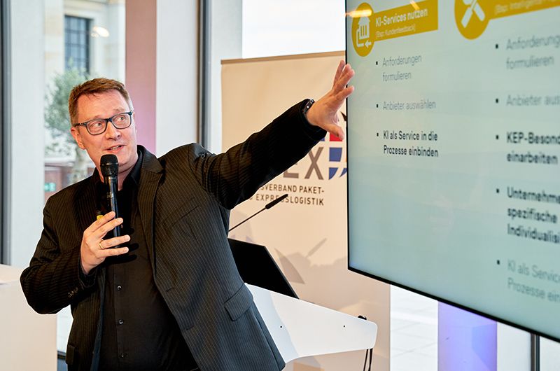 Die Science-Fiction-Analystin Dr. Isabella Hermann wünscht sich mehr Innovationsbereitschaft in Europa und weniger Abhängigkeit von KI-Lösungen aus den USA und China. KI-Experte Marco-Alexander Breit aus dem Bundesministerium für Wirtschaft und Klimaschutz empfahl Unternehmen, so schnell wie möglich in KI-Technologien zu investieren, um im Wettbewerb nicht abgehängt zu werden. Beiträge aus dem Publikum untermauerten, dass die Paketbranche hier bereits gut aufgestellt ist und das Thema stark im Fokus hat.